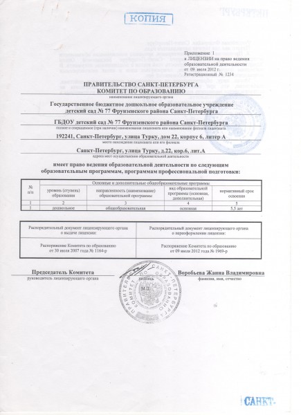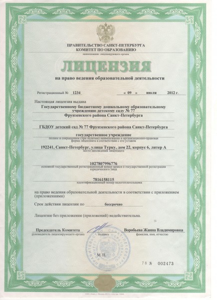 Полное наименование образовательной организации* Государственное бюджетное дошкольное образовательное учреждение детский сад №77 Фрунзенского района Санкт-Петербурга